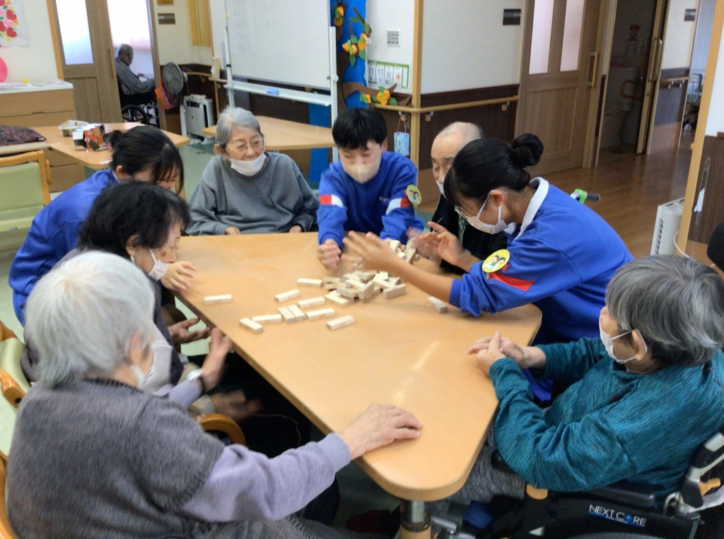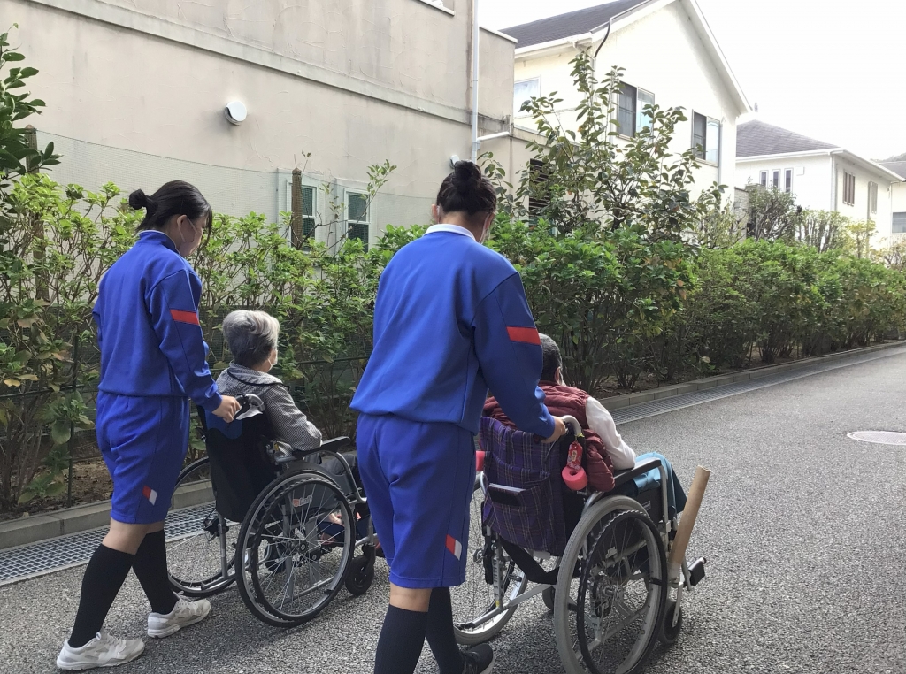 利用者様と笑顔でお話やゲームをしたり、車椅子を押して散歩に行ったり